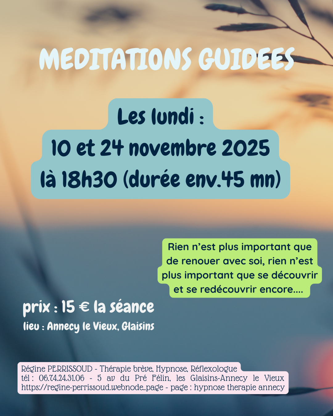 Elle prend la forme d'un voyage intérieur, guidé par ma voix, mes propositions, des visualisations avec un objectif ou un thème. C'est aussi un outil de développement personnel et de mieux être.